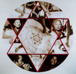 2004Collage, bestaand uit 13 foto's en katoen lint. Unicaat. Het vervaardigen van een zandmandala en de monniken die eraan werkten.