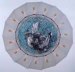 2004Collage gemaakt tgv Jacobusjaar 2004. De basis is slik, het ongevormde. Twee vleugels maken zich los en tillen het ongevormde aardse naar een hoger plan. De Jacobsschelp symboliseert de leiding, alle gedachten van de pelgrim leiden naar hetzelfde doel, ze gaan een spirituele weg.